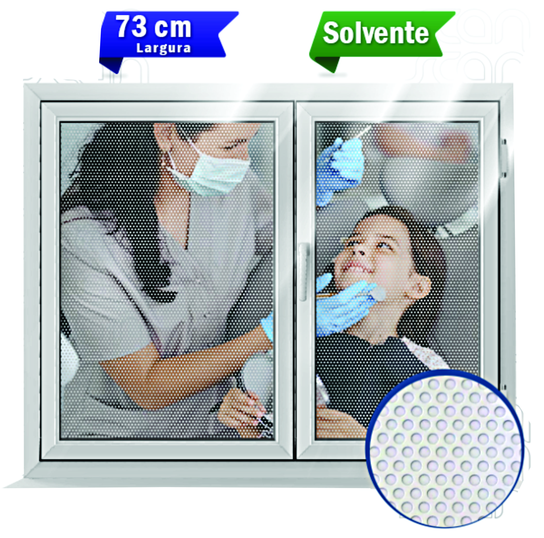 Extras: Visibilidade por dentro e impacto visual por fora. Ideal para vitrines e vidros, permite a entrada de luz com privacidade. Impressão solvente de alta qualidade e excelente durabilidade.